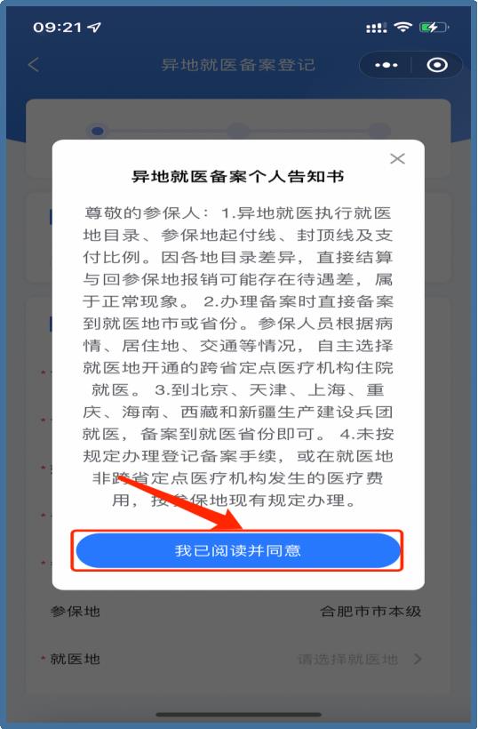 第三步:界面弹出的《异地就医备案个人告知书》,请认真阅读后,点击【我已阅读并同意】,进入下一界面。