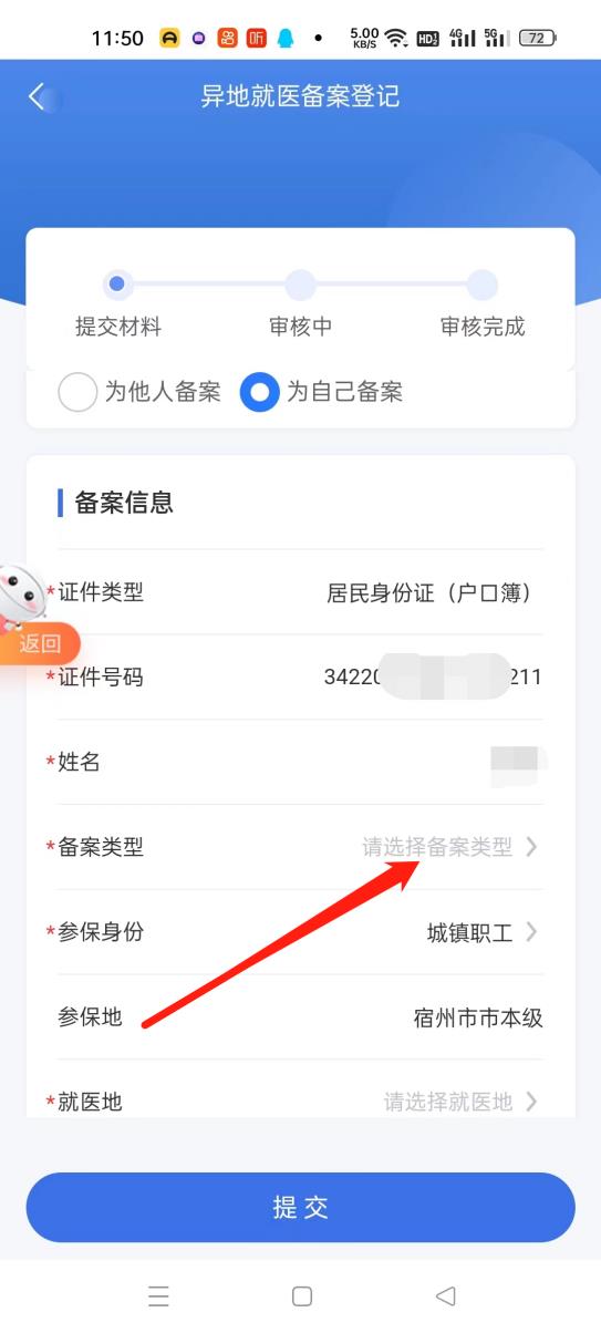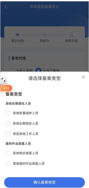1.在界面上勾选【为自己备案】,选择【备案类型】、就医地、开始日期,填写联系人电话、联系人地址等信息。